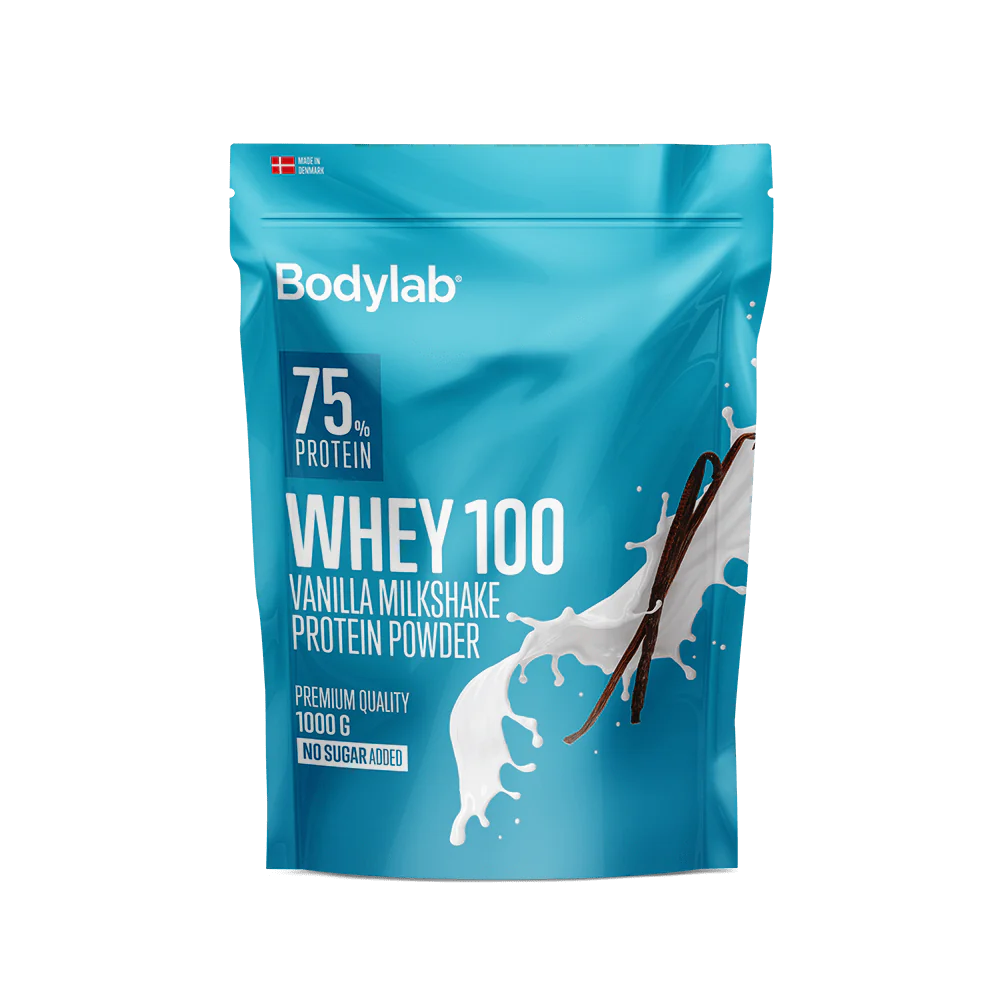 Bodylab Whey 100 is extracted from cow’s milk via modern and gentle filtration processes. Whey 100 consists of a mixture of 100% pure undenatured whey protein concentrate and whey protein isolate of the highest quality. Whey protein is known for its versatile amino acid profile, giving the product a wide range of uses.